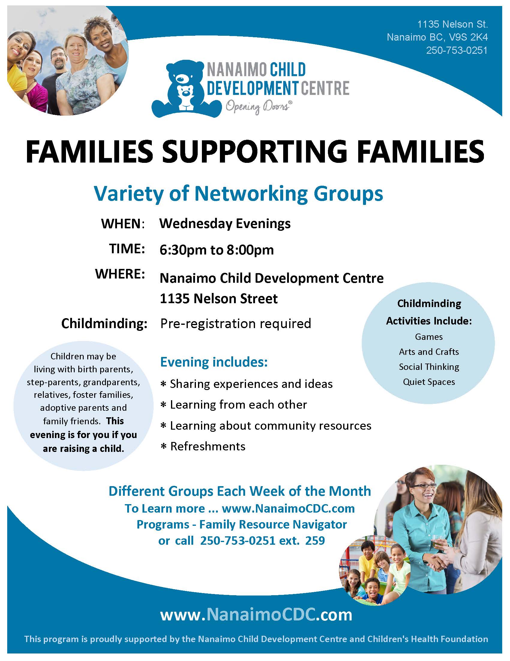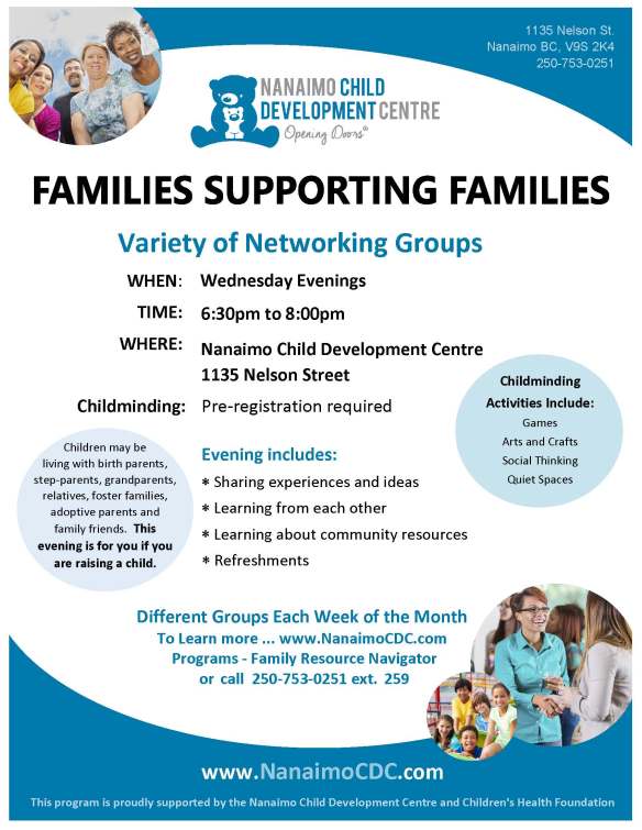 More info can be located on our website: https://nanaimocdc.com/programs-services/family-resource-navigator/family-supporting-families/ or by contacting me at the info listed below.